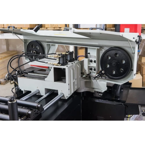 Автоматический ленточнопильный станок, предназначен для пиления труб и сплошных заготовок, максимальным диаметром круга 350 мм и прямоугольной заготовки 500x350 мм под углом 90°, а также с возможностью поворота рамы для пиления заготовок под углом 45°.