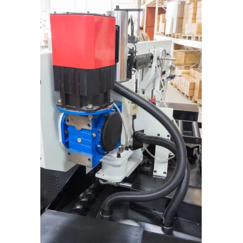 - Длина подачи заготовки контролируется автоматически c ЧПУ (СNC), движение происходит по линейным направляющим гарантирующим точность подачи.