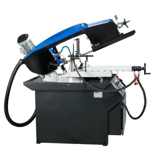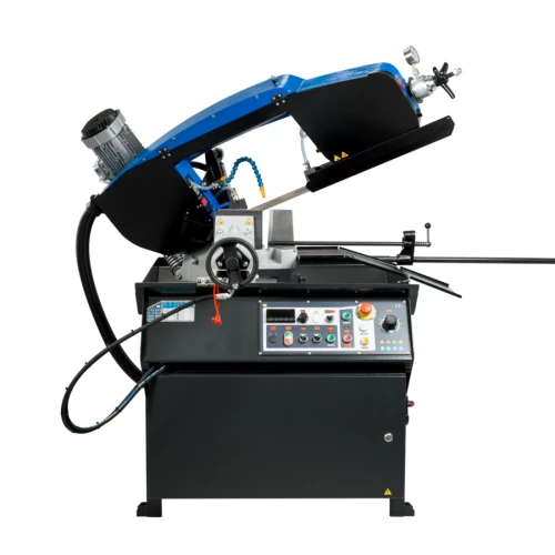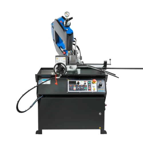 При переключении в ручной режим, можно управлять всеми функциями станка по отдельности. Благодаря наличию гидростанции, тиски могут регулироваться по усилию прижима. Высокие показатели производительности достигаются также вследствие использования частотного регулирования приводом вращения пилы, что позволяет плавно регулировать скорость резания от 15 до 90 м/мин, что также многократно увеличивает точность реза и стойкость ленточной пилы.