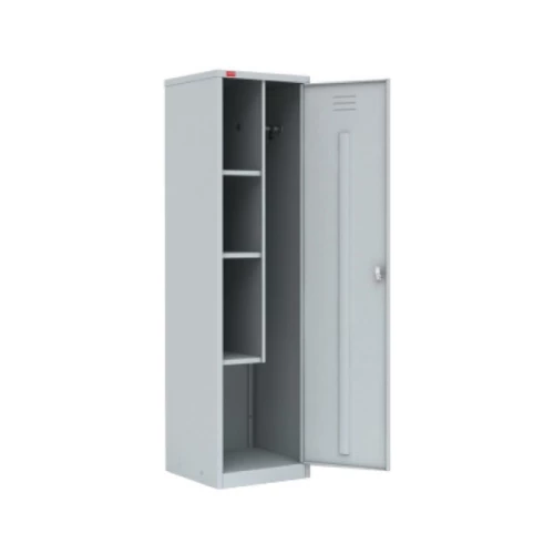 Шкаф металлический разборный двухсекционный, предназначен для хранения сменной одежды и инвентаря. В стандартную комплектацию каждого шкафа входят три полки , перекладина для вешалки и крючки для одежды. Шкаф оснащен врезным замком.